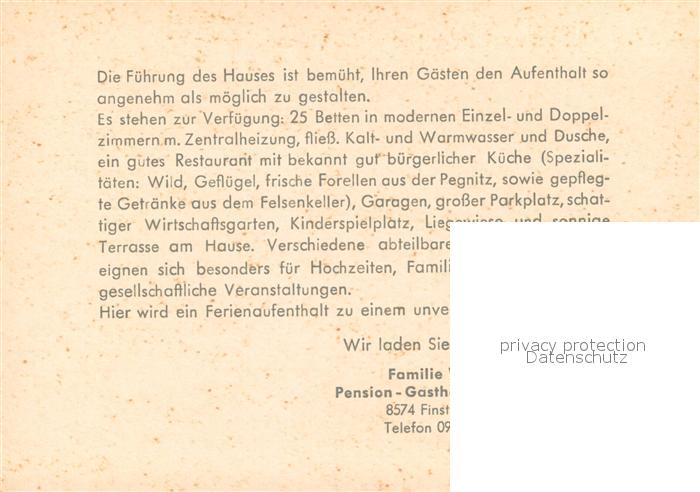 73650864 Finstermuehle Pegnitz Gasthof zur Linde Gaststube Spielplatz Turm postalisch nicht gelaufen Werbekarte (keine Postkarte) Erhaltung siehe scans [WerneD78] KatCode: 11110009574140