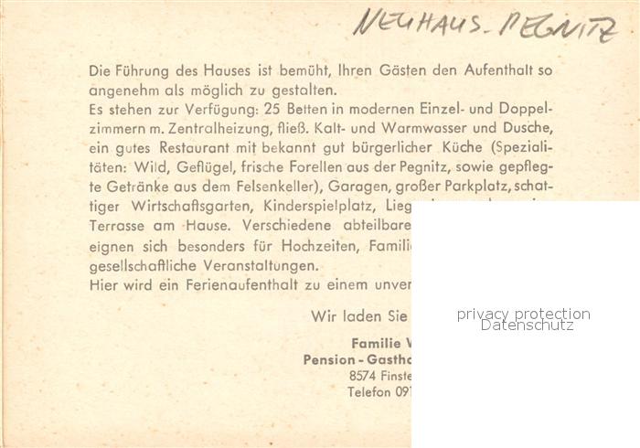 73124391 Finstermuehle Pegnitz Pension Gasthaus Zur Linde postalisch nicht gelaufen Werbekarte (keine Postkarte) Erhaltung siehe scans [KathaD81] KatCode: 11110009574140