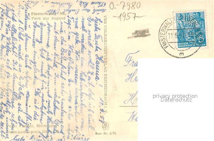 73692877 alte Postkarte Finsterwalde Park der Jugend postalisch gelaufen Erhaltung siehe scans [FriedD77] KatCode: 11110012062140