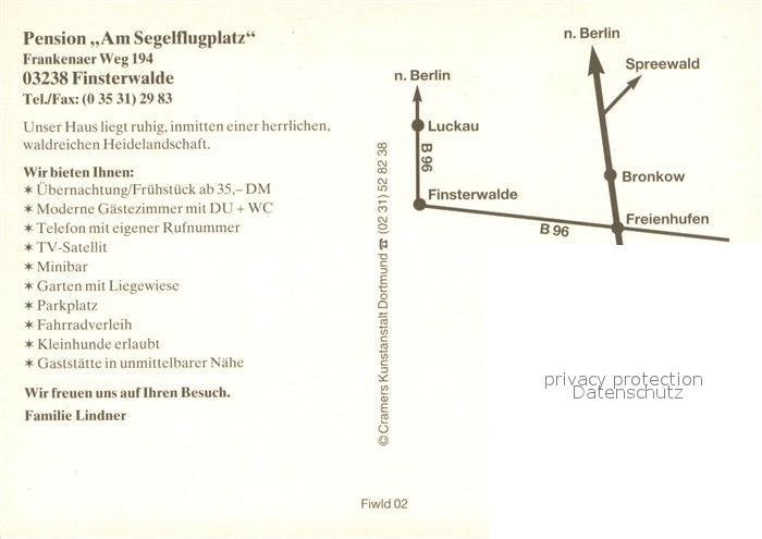 73663352 Finsterwalde Pension Am Segelflugplatz postalisch nicht gelaufen Werbekarte (keine Postkarte) Erhaltung siehe scans [LiesaD40] KatCode: 11110012062140