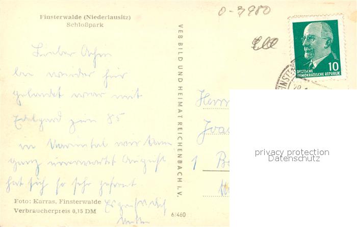43351198 alte Postkarte Finsterwalde Schlosspark postalisch gelaufen Erhaltung siehe scans [KathaD81] KatCode: 11110012062140