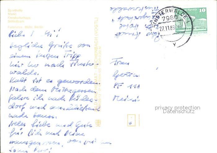 72369172 alte Postkarte Finsterwalde Sporthalle Markt Kreiskulturhaus Schlosspark postalisch gelaufen Erhaltung siehe scans KatCode: 11110012062140