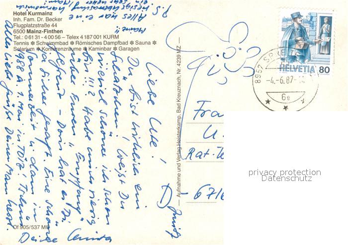 73615456 alte Postkarte Finthen Hotel Kurmainz Foyer Tennisplatz Panorama postalisch gelaufen Erhaltung siehe scans [WerneD78] KatCode: 11110007315000