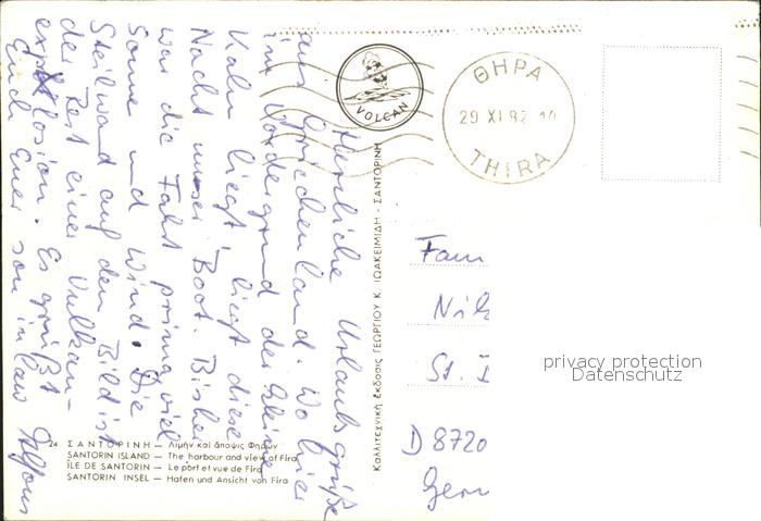 old postcard Fira Hafen Fischkutter postalisch gelaufen Erhaltung siehe scans