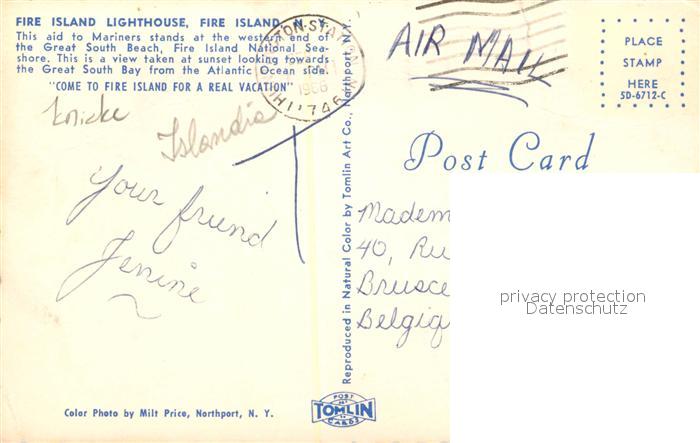 73130794 old postcard Fire Island Lighthouse postalisch gelaufen Erhaltung siehe scans [FriedD77] KatCode: 14140340000000
