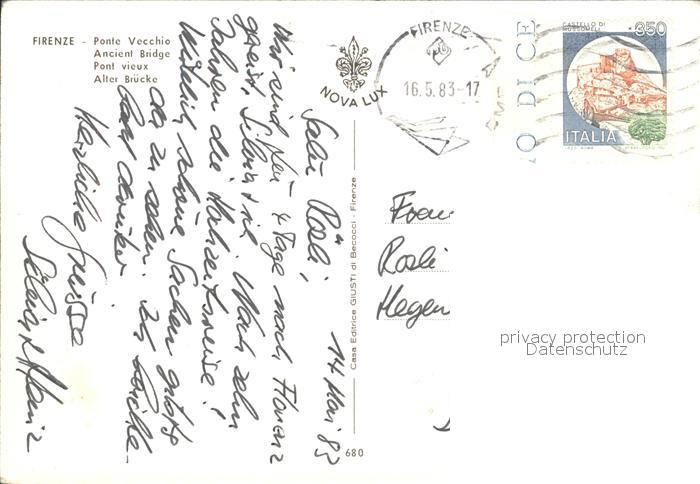 old postcard Firenze Florenz Alte Bruecke postalisch gelaufen Erhaltung siehe scans