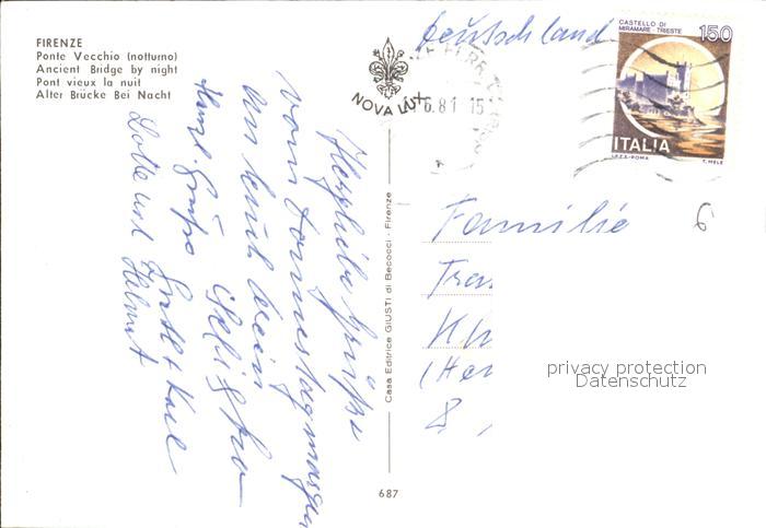 old postcard Firenze Florenz Alte Bruecke bei Nacht postalisch gelaufen Erhaltung siehe scans