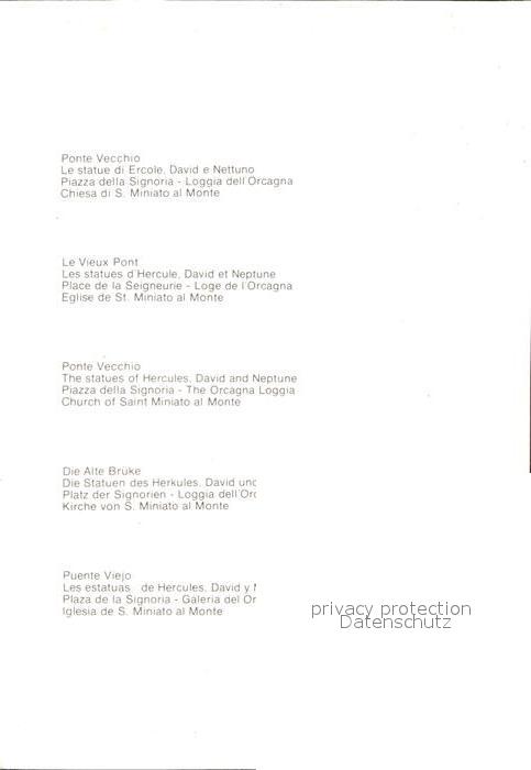Firenze Florenz Alte Bruecke Statuen Herkules David Neptun Platz Signorien postalisch nicht gelaufen Keine Postkarte (siehe scan) Erhaltung siehe scans