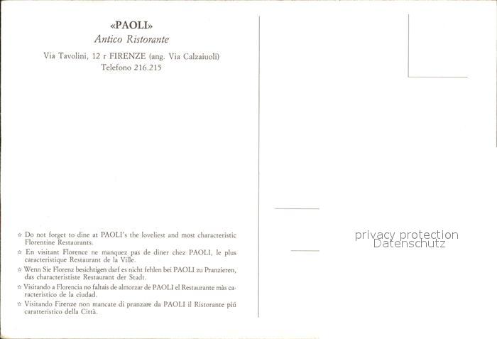 Firenze Florenz Antico Ristorante Paoli postalisch nicht gelaufen Erhaltung siehe scans