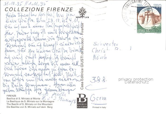 old postcard Firenze Florenz Basilica di S. Miniato al Monte postalisch gelaufen Erhaltung siehe scans