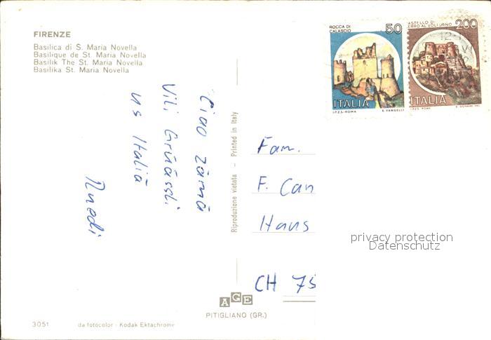 old postcard Firenze Florenz Basilica di Santa Maria Novella Basilika postalisch gelaufen Erhaltung siehe scans [FriedD77]