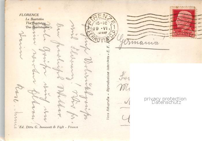 43535051 Firenze Florenz Battistero postalisch gelaufen Erhaltung siehe scans [PaolaD17] old postcard Paol Katcode 11240