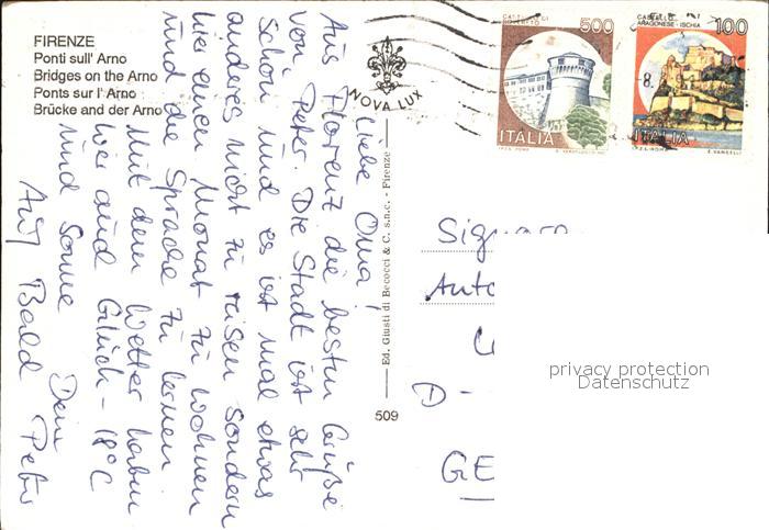 old postcard Firenze Florenz Bruecke Arno postalisch gelaufen Erhaltung siehe scans