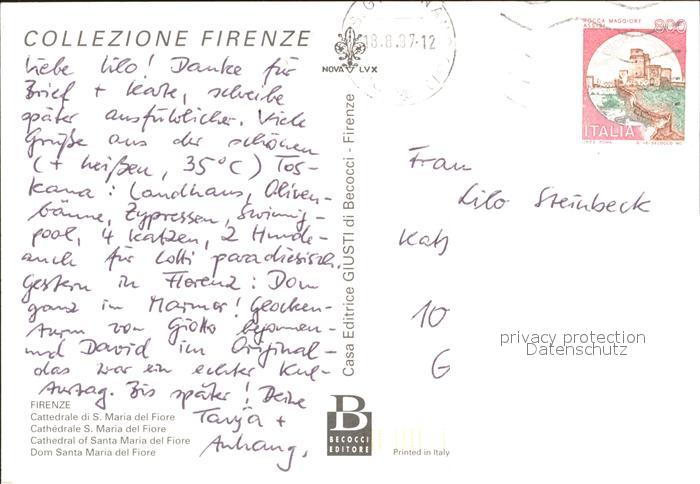 old postcard Firenze Florenz Cattedrale di San Maria del fiore Dom Santa Maria del Fiore postalisch gelaufen Erhaltung siehe scans