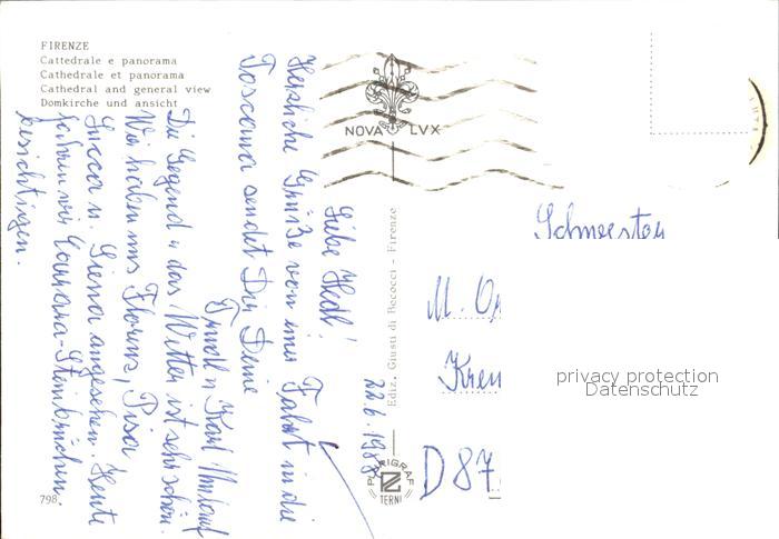 old postcard Firenze Florenz Cattedrale Kathedrale postalisch gelaufen Erhaltung siehe scans
