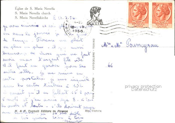 old postcard Firenze Florenz Chiesa S Maria Novella postalisch gelaufen Erhaltung siehe scans