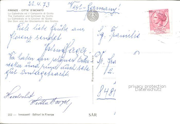 old postcard Firenze Florenz Citta d Incanto postalisch gelaufen Erhaltung siehe scans