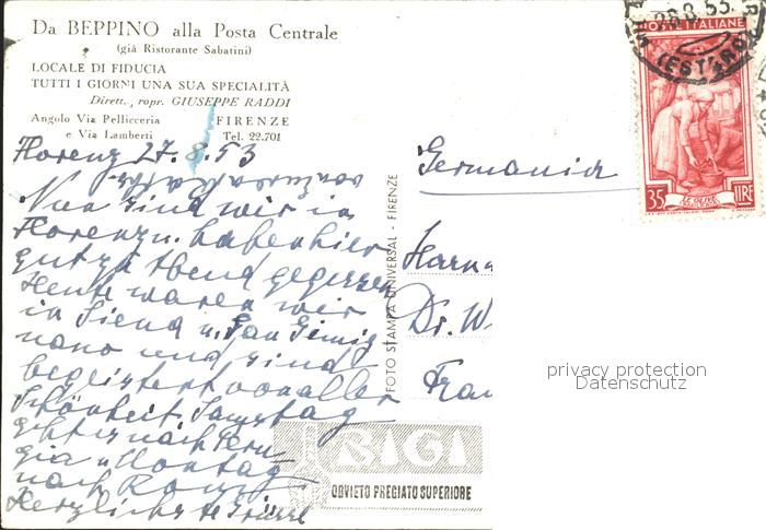 old postcard Firenze Florenz Da Beppino alla Posta Centrale postalisch gelaufen Erhaltung siehe scans
