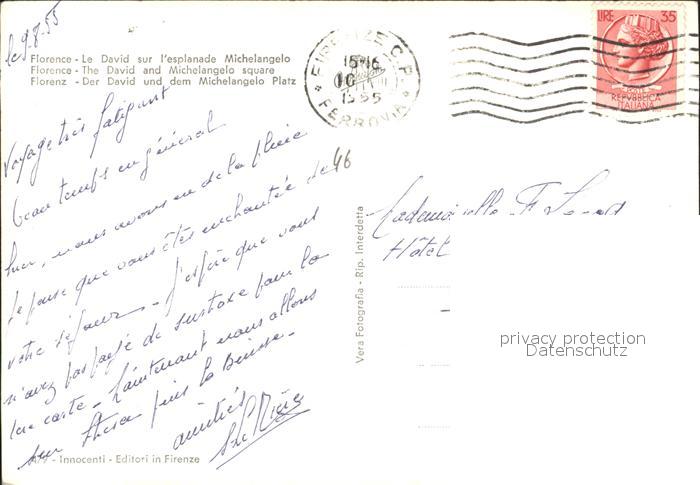 old postcard Firenze Florenz David esplanade Michelangelo postalisch gelaufen Erhaltung siehe scans