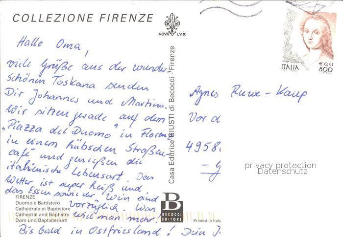 old postcard Firenze Florenz Dom Baptisterium postalisch gelaufen Erhaltung siehe scans