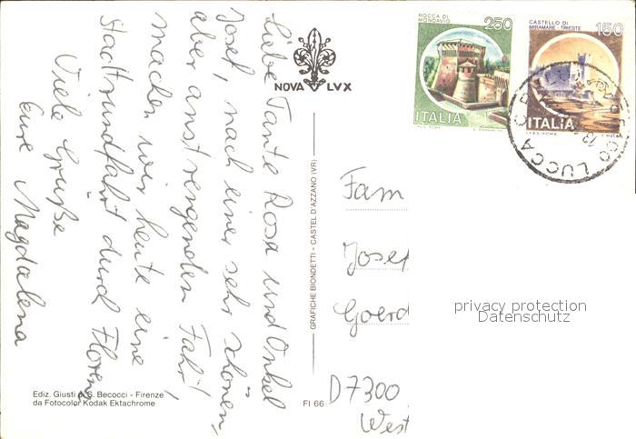 old postcard Firenze Florenz Dom Bruecke postalisch gelaufen Erhaltung siehe scans