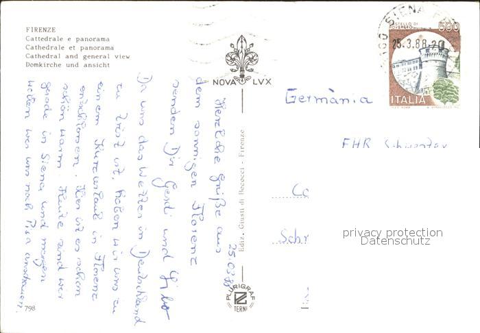 old postcard Firenze Florenz Dom Ortsansicht postalisch gelaufen Erhaltung siehe scans