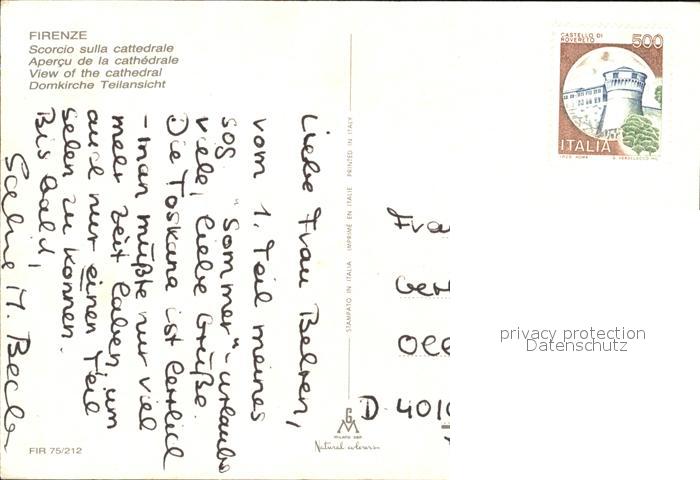 old postcard Firenze Florenz Domkirche postalisch gelaufen Erhaltung siehe scans