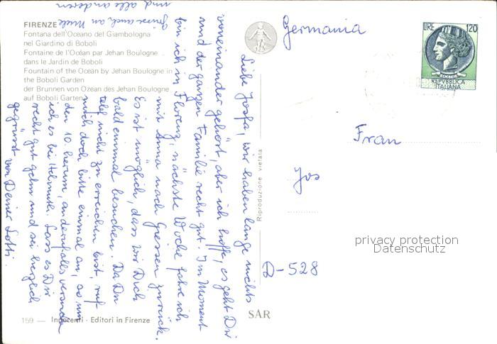 old postcard Firenze Florenz Fontana dell Oceano del Giambologna nel Giardino di Boboli Wasserspiegelung postalisch gelaufen Erhaltung siehe scans