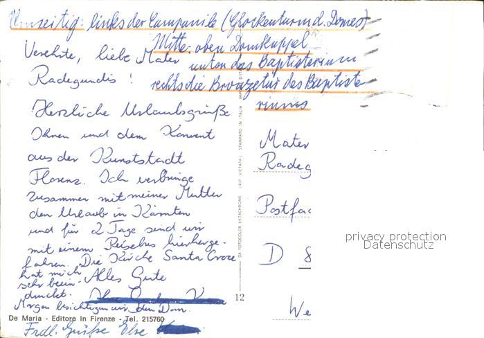 old postcard Firenze Florenz Glockenturm Domkuppel Baptisterium Bronzetuer postalisch gelaufen Erhaltung siehe scans