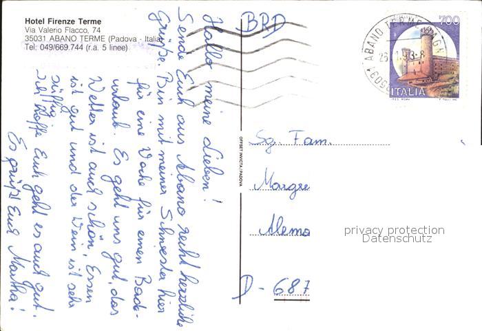 old postcard Firenze Florenz Hotel Firenze Terme postalisch gelaufen Erhaltung siehe scans