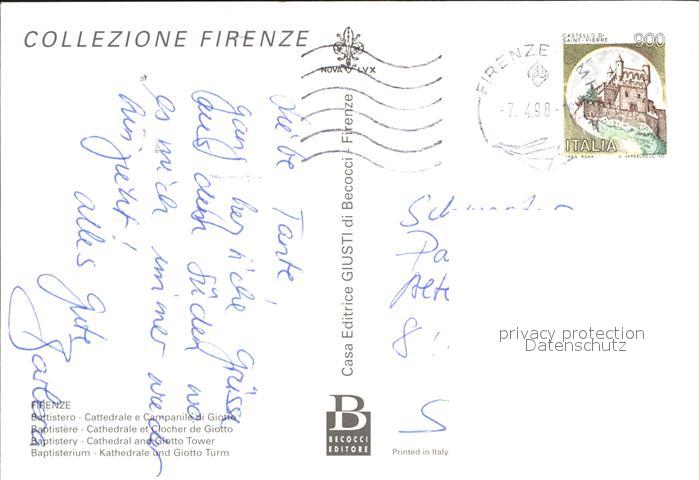old postcard Firenze Florenz Kathedrale und Giotto Turm postalisch gelaufen Erhaltung siehe scans