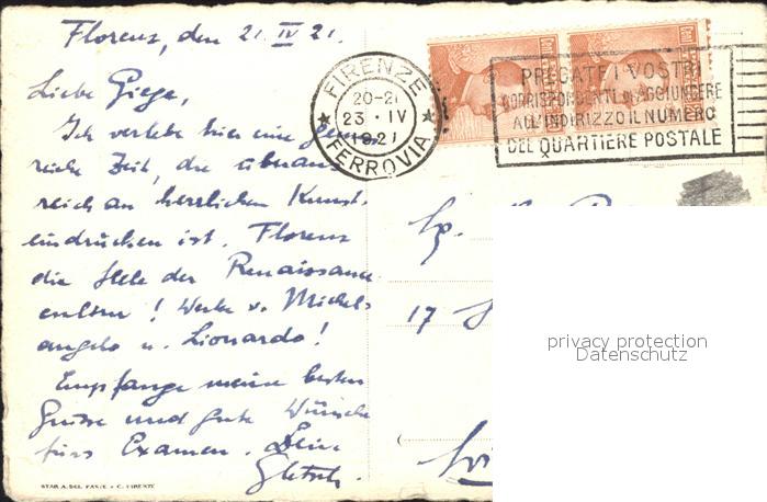 old postcard Firenze Florenz Palazzo Vecchio Kuenstlerkarte postalisch gelaufen Erhaltung siehe scans