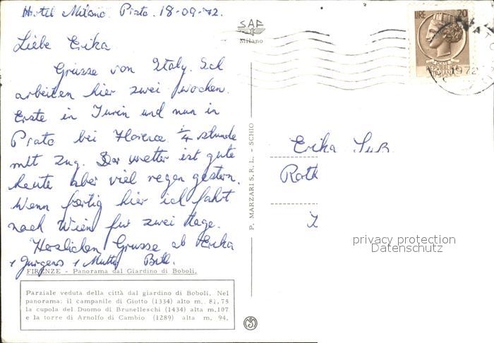 old postcard Firenze Florenz Panorama dal Giardino di Boboli postalisch gelaufen Erhaltung siehe scans