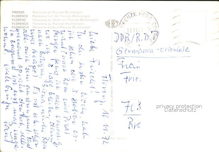 old postcard Firenze Florenz Panorama dal Piazzale Michelangelo Arno Bruecken Palazzo Vecchio postalisch gelaufen Erhaltung siehe scans