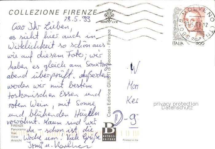 old postcard Firenze Florenz Panorama notturno Nachtaufnahme postalisch gelaufen Erhaltung siehe scans