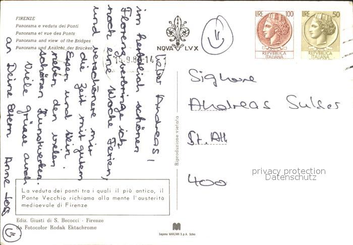 old postcard Firenze Florenz Panorama veduta dei Ponti postalisch gelaufen Erhaltung siehe scans