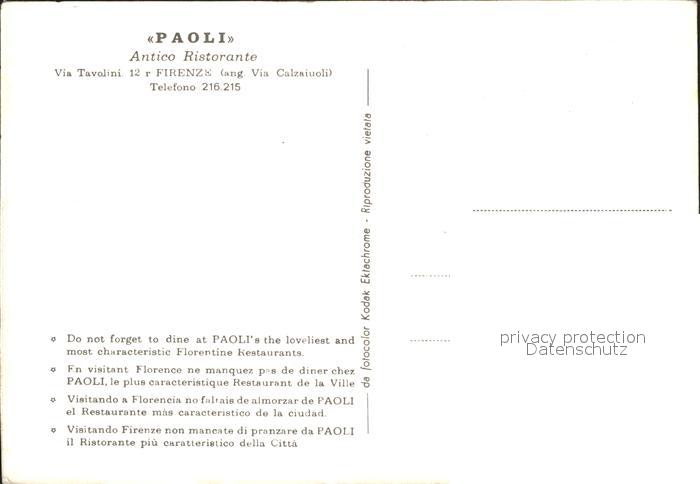 Firenze Florenz Paoli Antico Ristorante postalisch nicht gelaufen