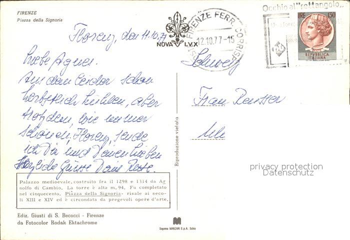 old postcard Firenze Florenz Piazza della Signoria postalisch gelaufen Erhaltung siehe scans