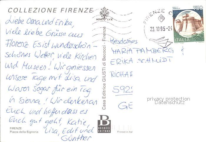 old postcard Firenze Florenz Piazza della Signoria postalisch gelaufen Erhaltung siehe scans