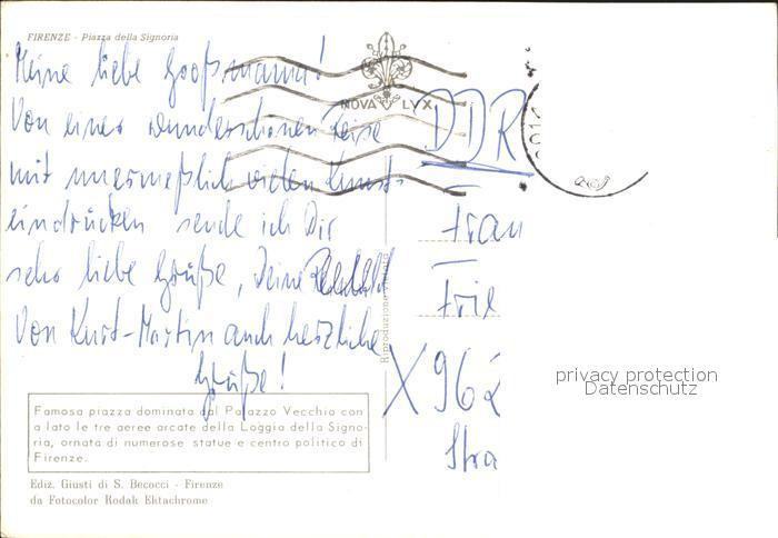 old postcard Firenze Florenz Piazza della Signoria postalisch gelaufen Erhaltung siehe scans