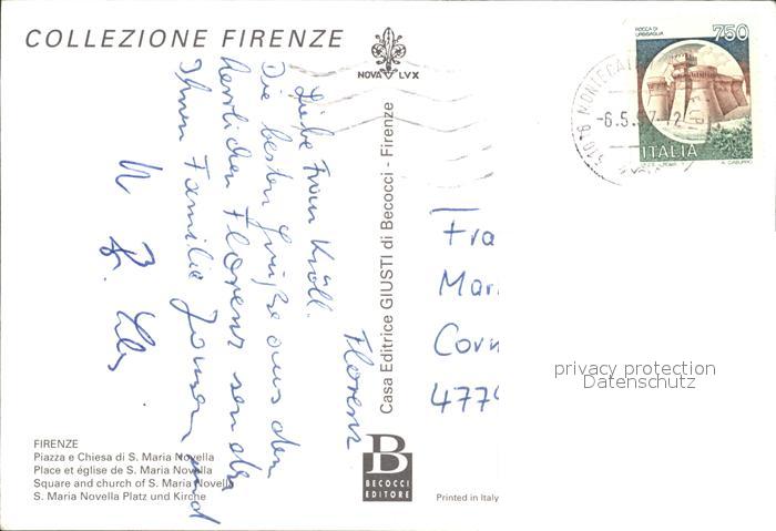 old postcard Firenze Florenz Piazza e Chiesa di San Maria Novella San Maria Novella Platz und Kirche postalisch gelaufen Erhaltung siehe scans