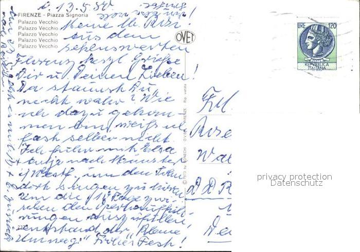 old postcard Firenze Florenz Piazza Signoria Palazzo Vecchio postalisch gelaufen Erhaltung siehe scans