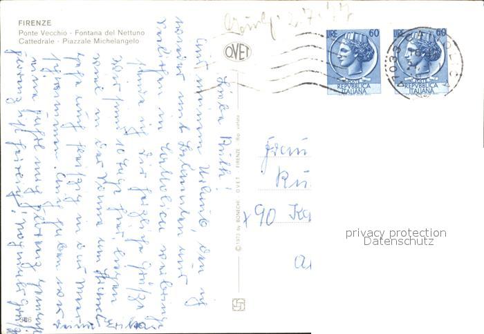 old postcard Firenze Florenz Ponte Vecchio Fontana del Nettuno Cattedrale Piazzale Michelangelo postalisch gelaufen Erhaltung siehe scans