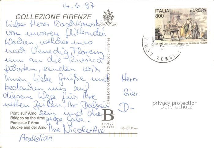 old postcard Firenze Florenz Ponti sull Arno Bruecke postalisch gelaufen Erhaltung siehe scans
