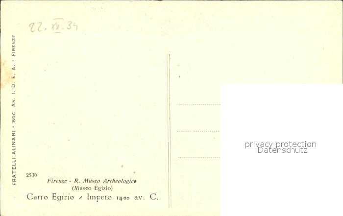 Firenze Florenz R. Museo Archeologico Carro Egizio postalisch nicht gelaufen Erhaltung siehe scans