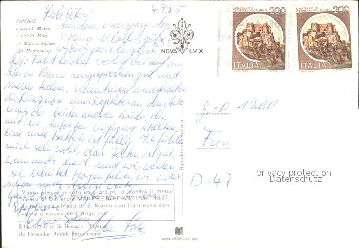 old postcard Firenze Florenz St. Markusplatz postalisch gelaufen Erhaltung siehe scans