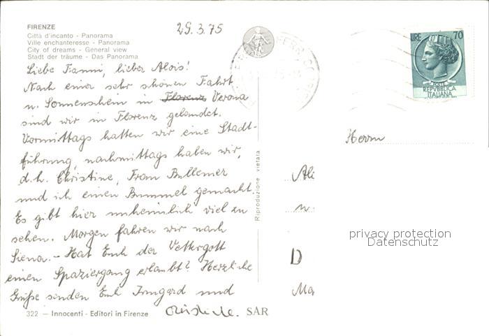old postcard Firenze Florenz Stadtansicht postalisch gelaufen Erhaltung siehe scans