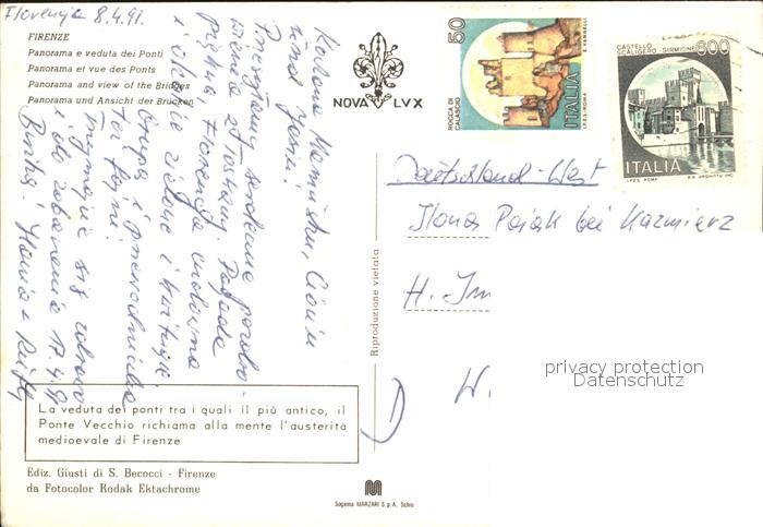 old postcard Firenze Florenz Stadtansicht postalisch gelaufen Erhaltung siehe scans