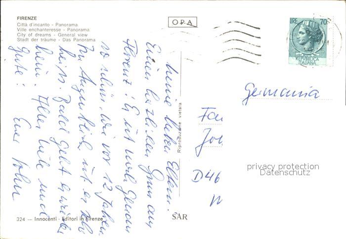 old postcard Firenze Florenz Stadtbild mit Dom Palast postalisch gelaufen Erhaltung siehe scans
