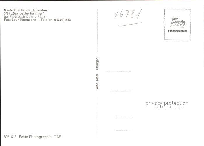 41792640 Fischbach Dahn Gaststaette Bender Lambert Saarbacherhammer postalisch nicht gelaufen Erhaltung siehe scans KatCode: 11110007340011